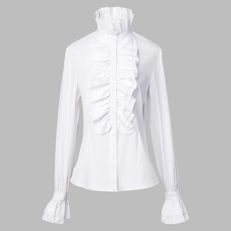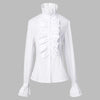 White Steampunk Blouse with Ruffled Collar and Puff Sleeves