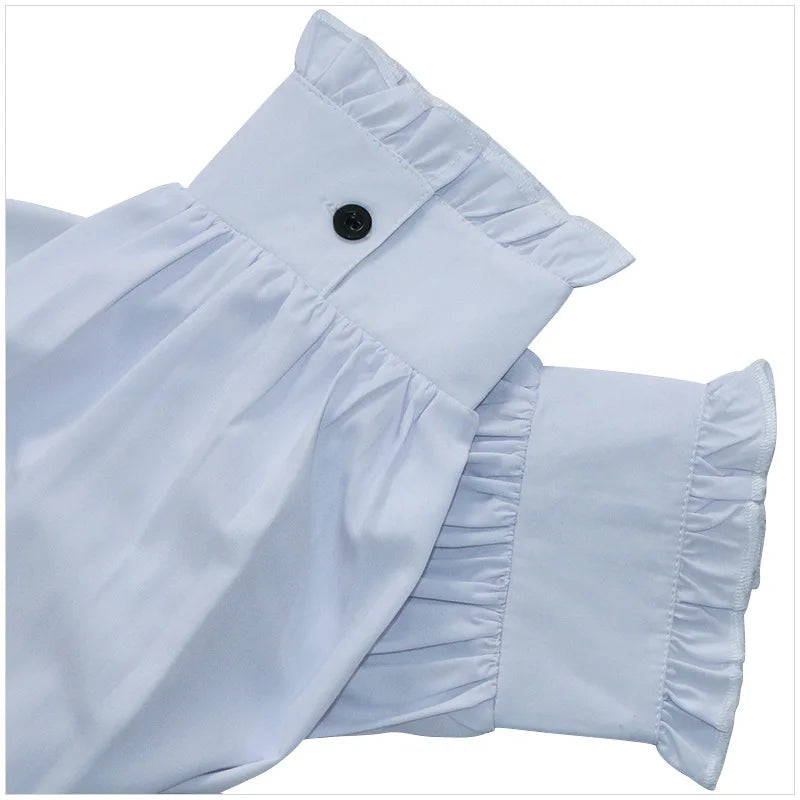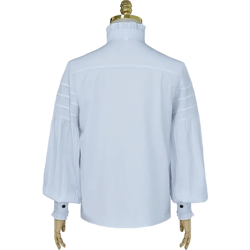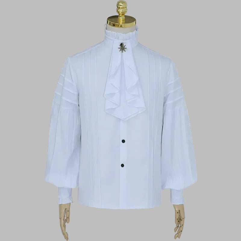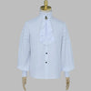 White Steampunk Shirt with High Collar and Ruffle XXL