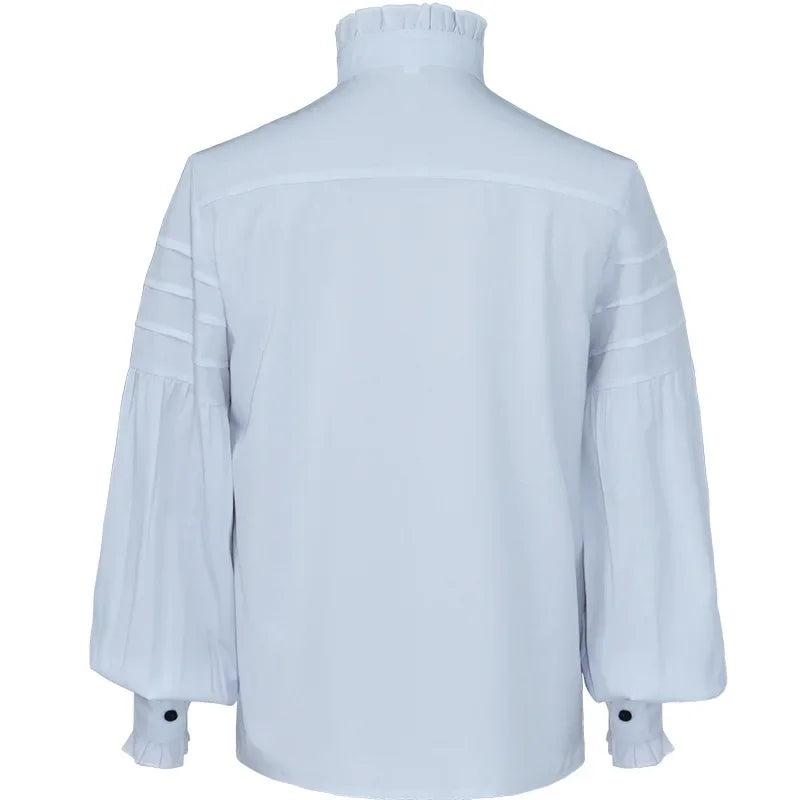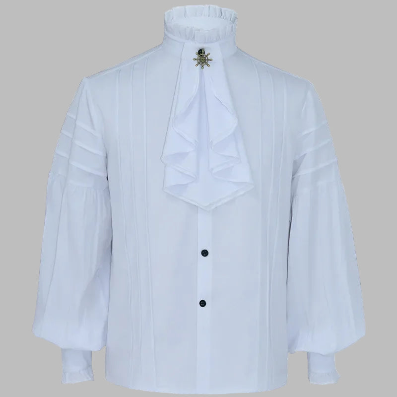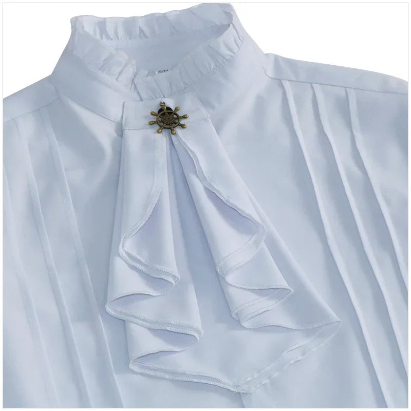 White Steampunk Shirt with Ruffle and Puff Sleeves