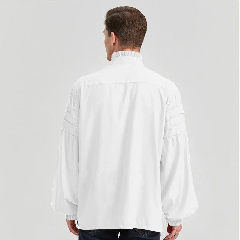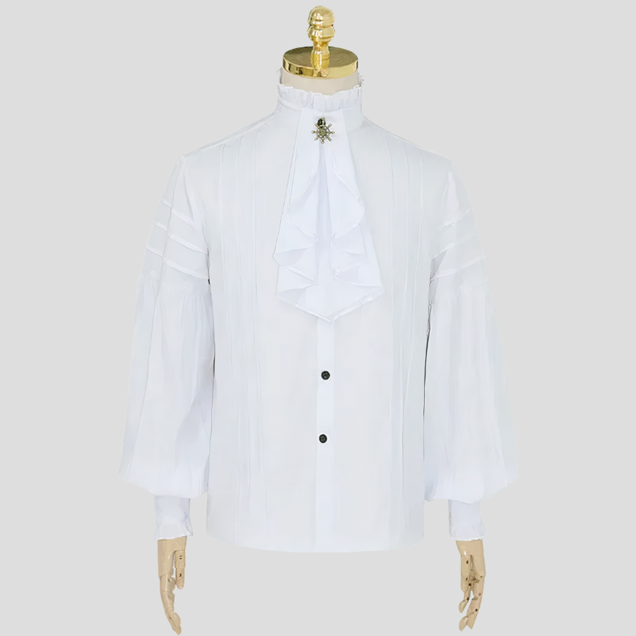 White Steampunk Shirt with Ruffled Collar and Puff Sleeves