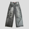 Szerokie Jeansy Grunge z Nadrukiem Kwiatowym Szare