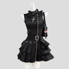 Women's Black Gothic Dress with Stripes, Zipper, and Ruffles View options