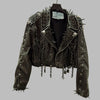 Women's Black Leather Biker Jacket with Studs and Chains Punk Goth Metal Style