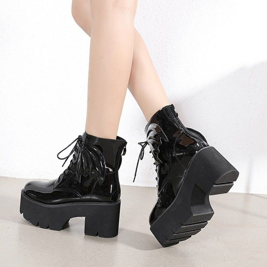 - Material: patent leather, smooth polyurethane (imitation leather), metal, rubber