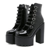 Women's Black Patent Leather Gothic Platform Shoes with Metal Details
