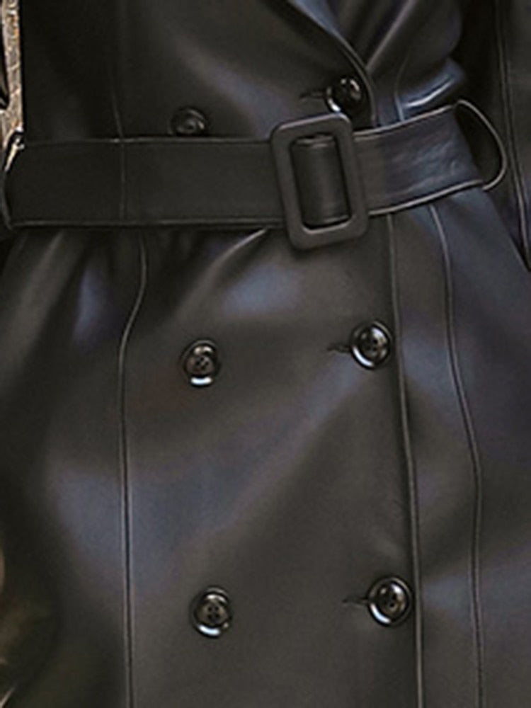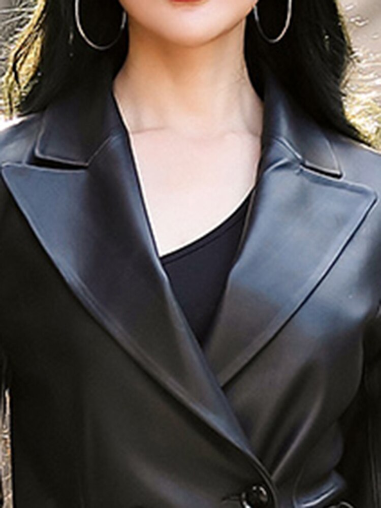To achieve a unique and elegant style, this women's coat is made from black vegan leather for several reasons: