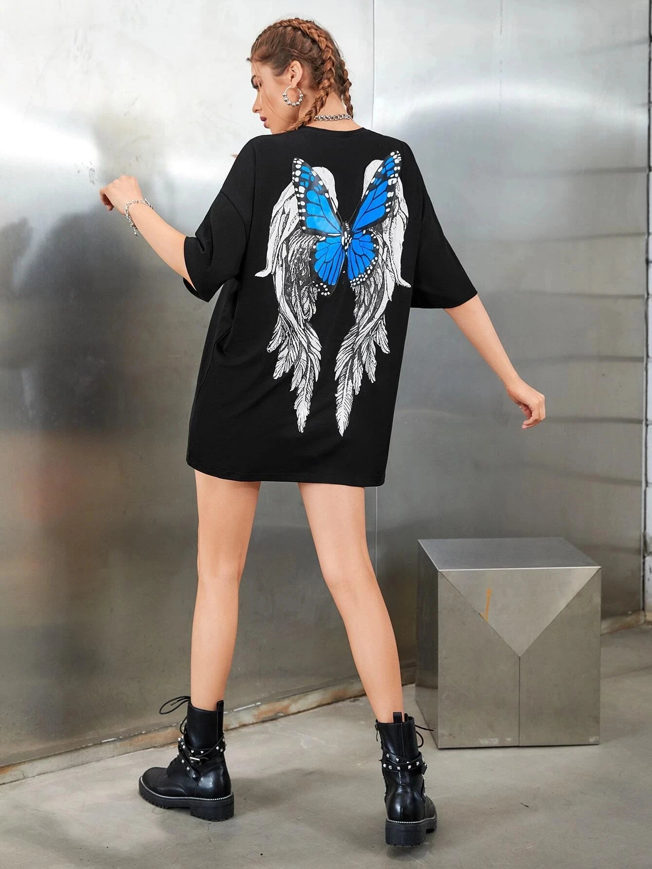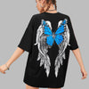Women's Oversize Gothic Rock Blue Butterfly Wings Blouse