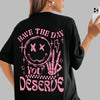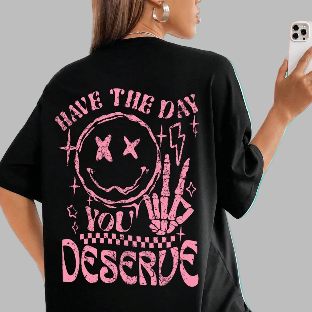 Women's Oversized Grunge Rock T-Shirt with Pink Smiley Print