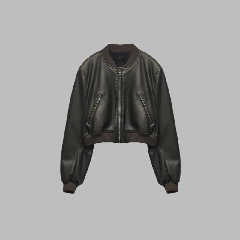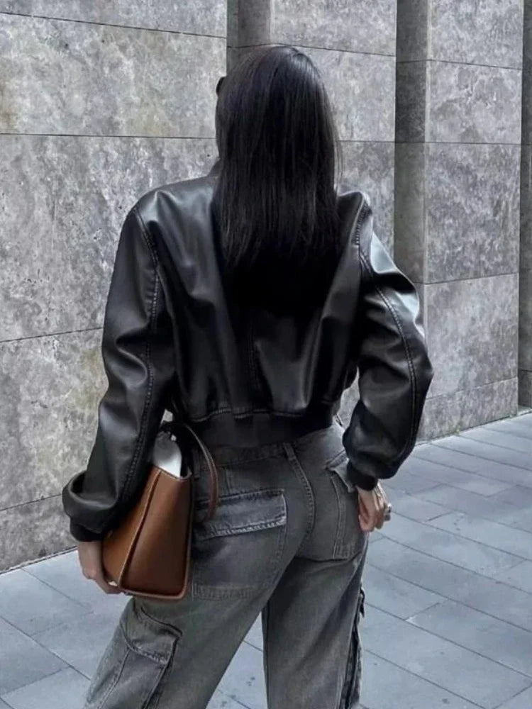 Women's Short Black Leather Rock Goth Jacket with Zippers