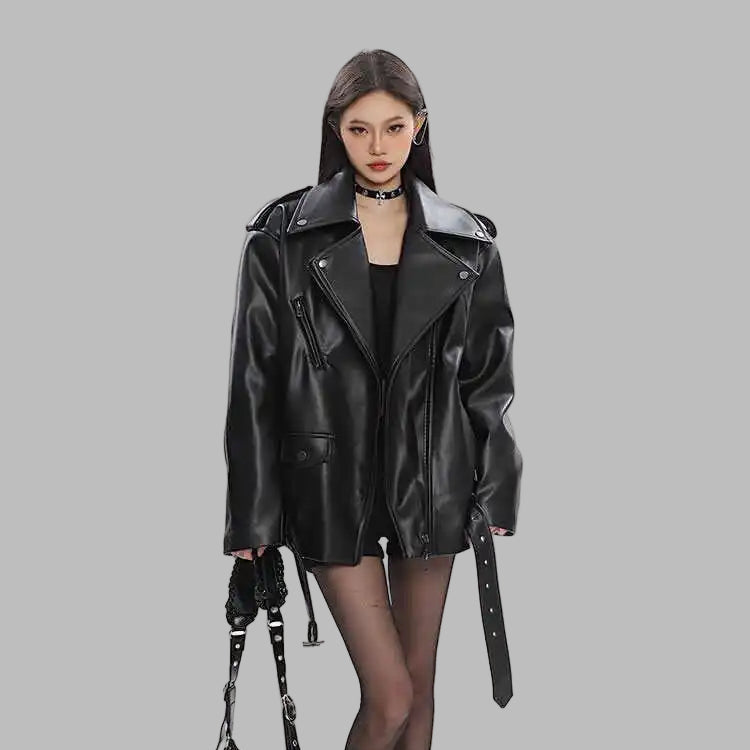 Women's Vintage Long Black Gothic Oversize Leather Jacket
