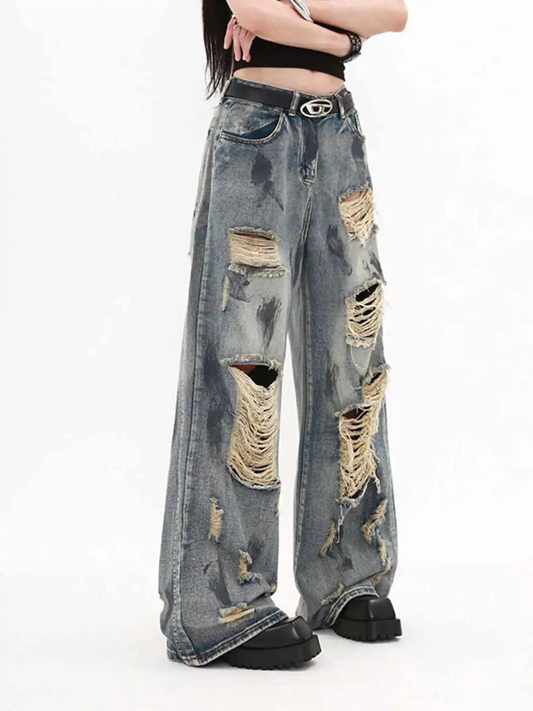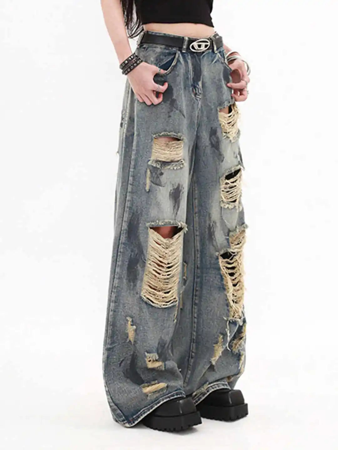 Women's Wide Ripped Grunge Jeans